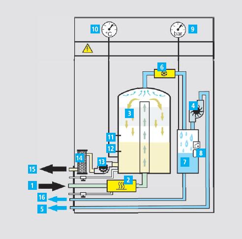 限制。蒸汽冷卻并冷凝。濃縮